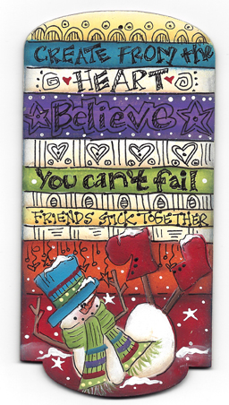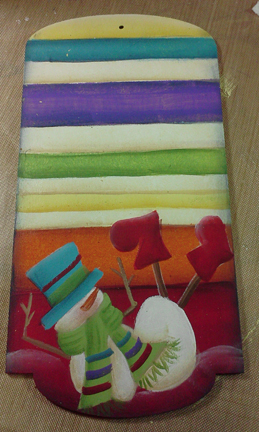 Use the photo in the pdf as your pattern for the snowman shape. Test out the snowman design using tissue tracing paper. Slip white transfer paper underneath and transfer the design.