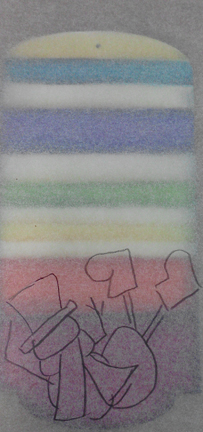 Then use the pattern/pdf and start to design your mini banner ornament on paper. You can use the stripes basecoat stencil to help base your sections or you can put them in by hand. Combine sections together to create wider shapes.